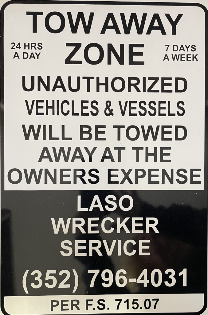 • Tow Away Signs are in full compliance with regulations and installed and maintained at NO COST TO YOU.